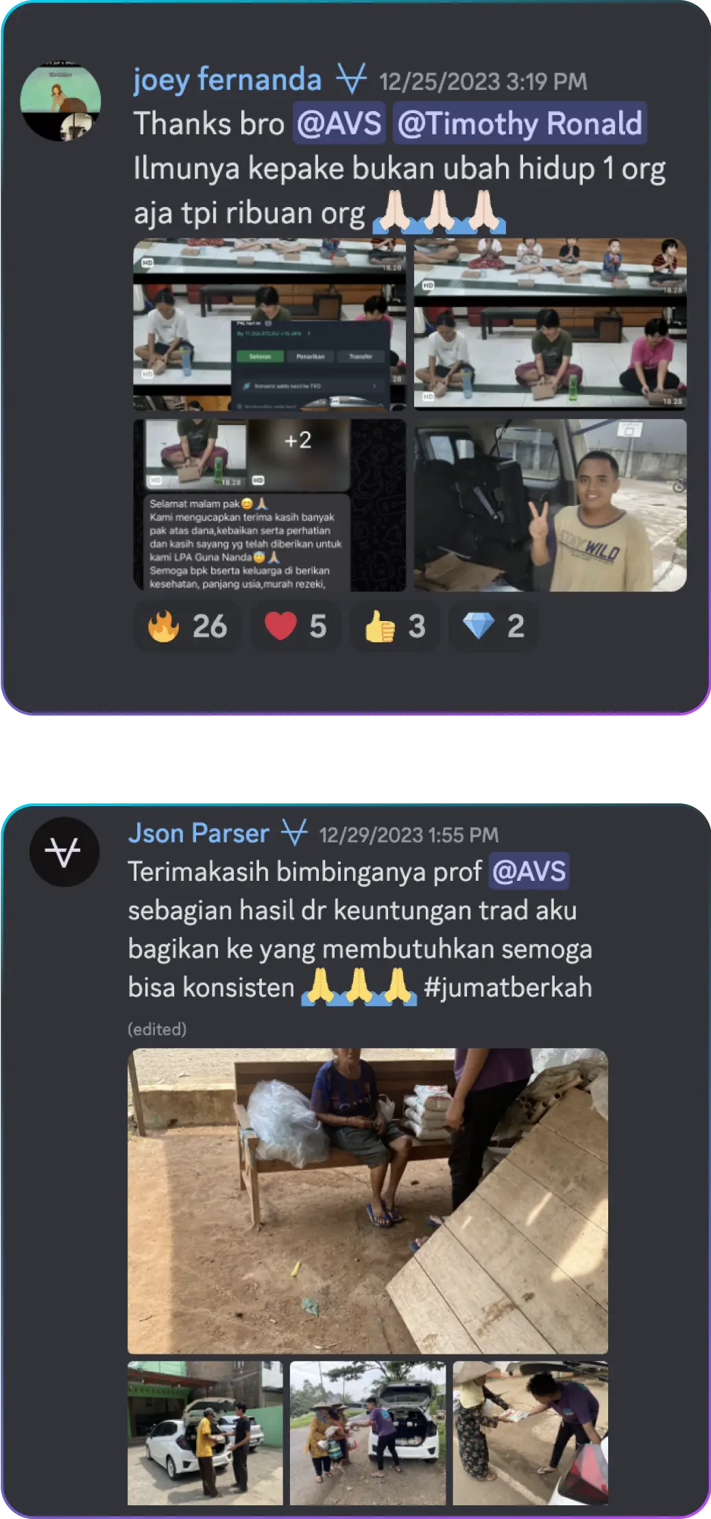 Jangan percaya kita, lihat sendiri aja testimoni mereka yang bisa banyak membantu orang dari hasil cuan di discord